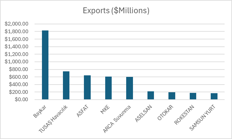 Baykar Technology, una empresa privada de defensa y aeroespacial, ha aumentado la producción de drones para satisfacer la creciente demanda. Baykar exportó drones por valor de 1800 millones de dólares en 2024, con un 90 % de los ingresos procedentes de ventas al extranjero, según datos de la empresa.