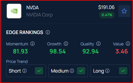 Benzinga Edge Stock Rankings sitúa a Nvidia en el percentil 98 en cuanto a Crecimiento y en el percentil 3 en cuanto a Valor, lo que refleja un perfil de rendimiento mixto. Consulta el informe detallado aquí.